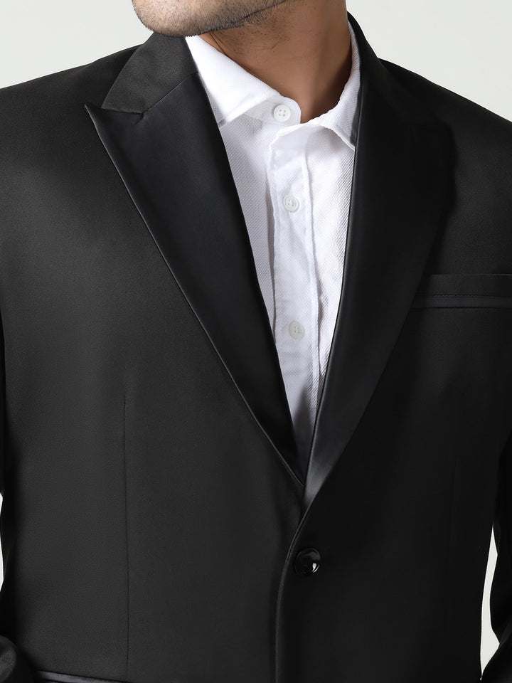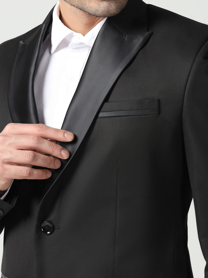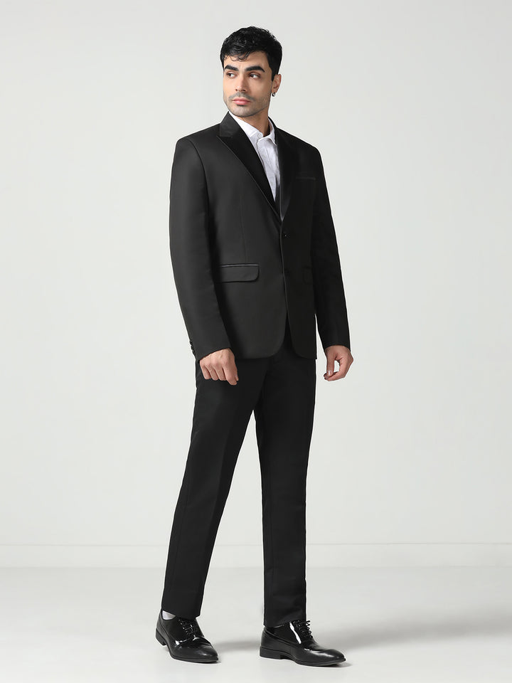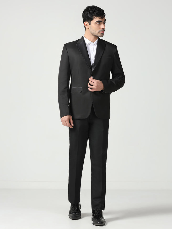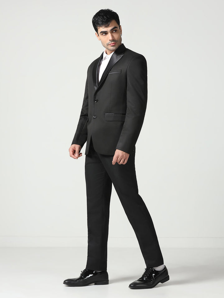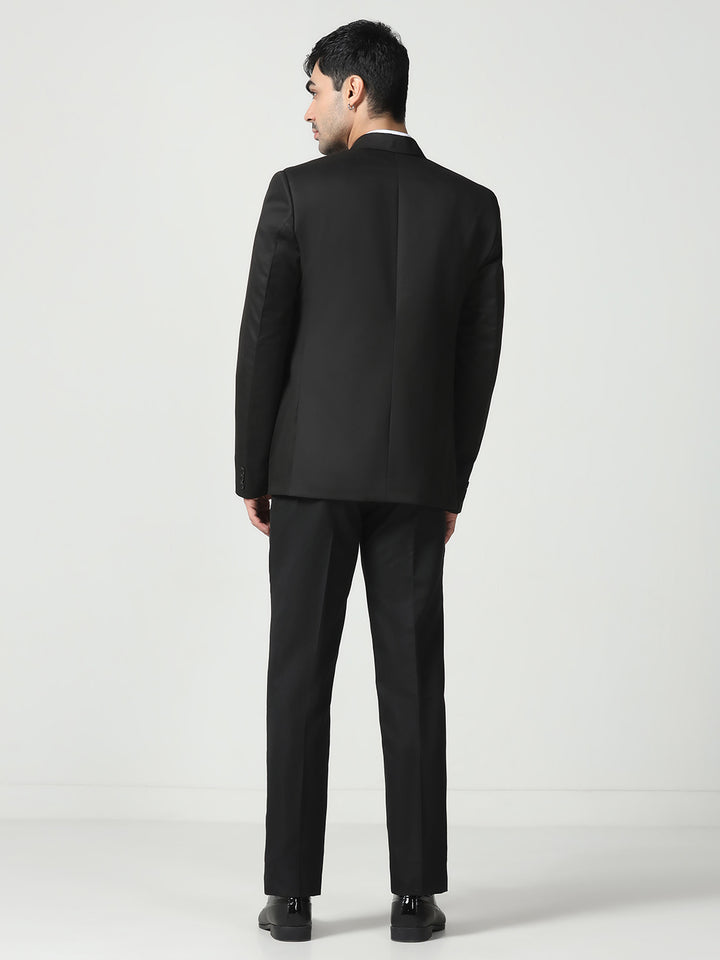 Men Black Notched Lapel Collar Tuxedo Suit